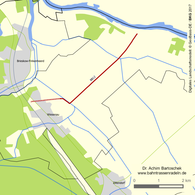 Status / Beschilderung: | Im Gegensatz zur parallel verlaufenden Straße wird der eigentliche Bahntrassenweg nicht von der Radwegweisung erfasst. |
