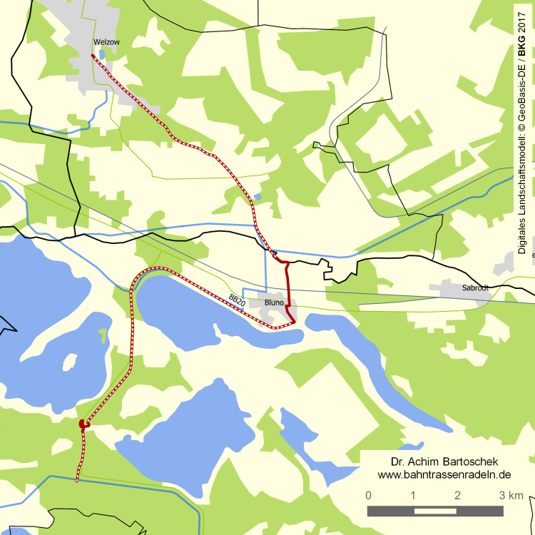 eine ehem. Bahnstrecke queren und nach BLUNO: Dorfaue |