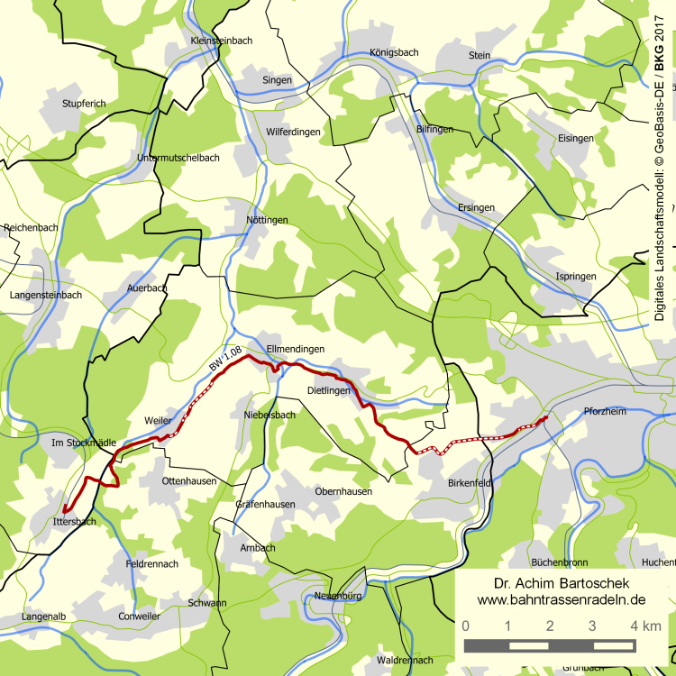 BW 1.08 Pforzheim Ittersbach (Teilstrecke der ehem. Kleinbahn nach Ittersbach) |  |