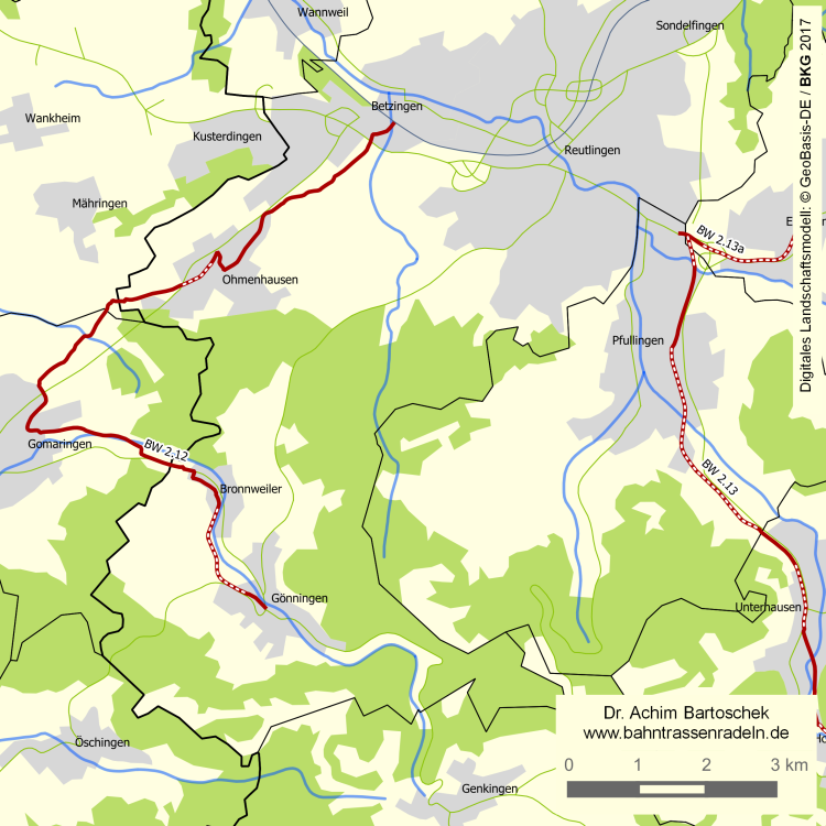 Gesamtstrecke Reutlingen-Betzingen – Gönningen, Bahntrassenabschnitt zw. Bronnweiler und Gönningen |