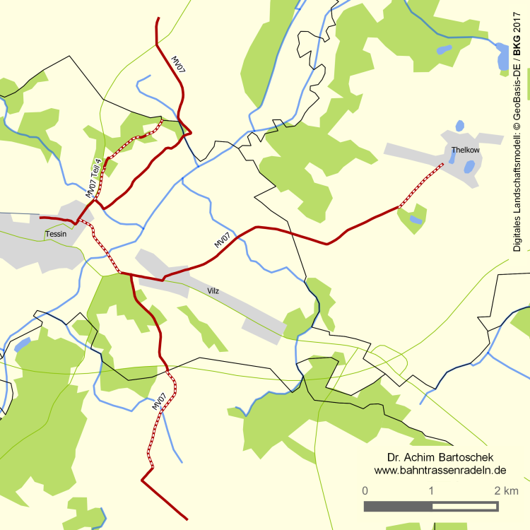 1. bei Neu-Gramstorf (Stichstrecke nach Zarnewanz) 2. Tessin – Vilz – Sophienhof – Thelkow 3. bei Reddershof – Selpin – bei Wesselstorf |