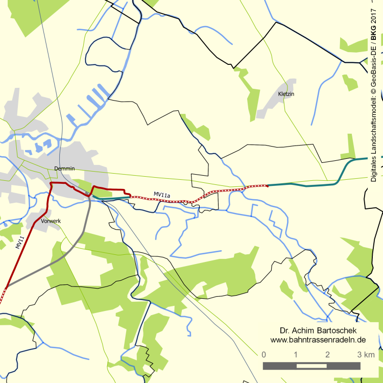 Route: (in Diskussion: Demmin – Siedenbrünzow – Tutow)