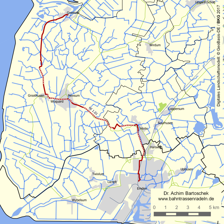 Emden – Hinte – Westerhusen – Groß Midlum – Freepsum – Canum – Pewsum – Groothusen – Manslagt – Pilsum – Greetsiel |