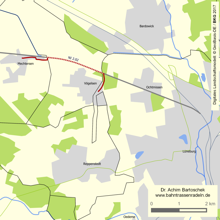 Stilllegung der Bahnstrecke: | 1981 (Pv), 1994 (Stilllegung Mechtersen – Lüneburg), 2000 (Abbau der Gleise) |