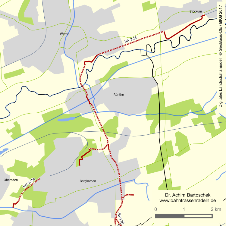 | Verweise: | In Bergkamen wurde bis Ende Juni 2013 der 350 m lange Lückenschluss zum Klöcknerbahnweg (NW 3.26) inkl. einer Ampel an der Querung der Industriestraße ausgebaut. |