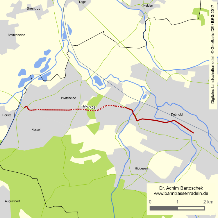 mit Anbindung vom Bahnhof Detmold; in Detmold ist von der Trasse nicht mehr zu erkennen |