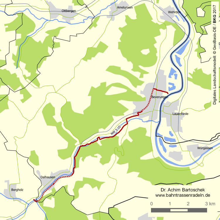 Beverungen (Bahnhof bis Johannes-Diedrich-Straße) und bei Dalhausen (K 44 bis Lebersiek) |
