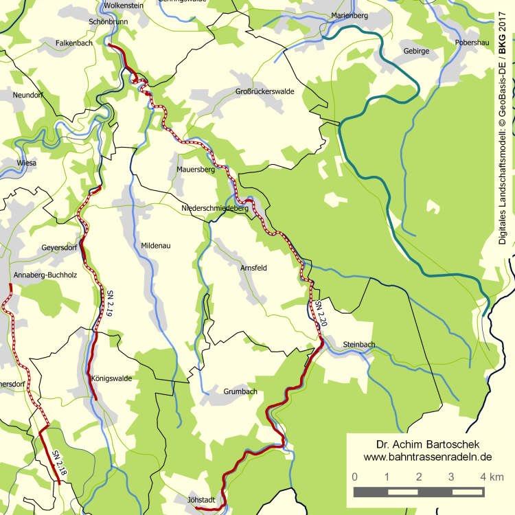 ab Steinbach weitere 7 km in etwa parallel zur Museumsbahn bis Jöhstadt |