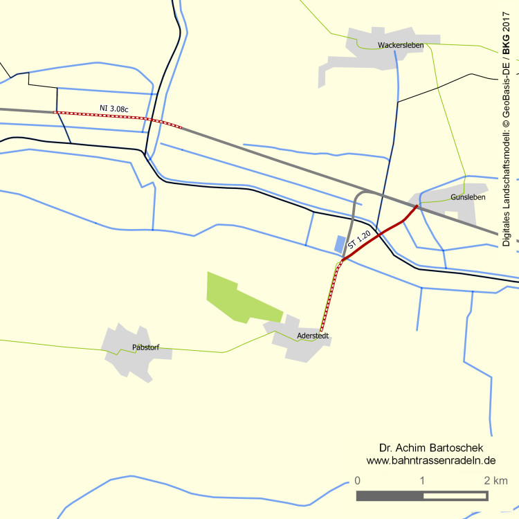 Eisenbahnstrecke: | Gleisanschluss der ehem. Zuckerfabrik Aderstedt; 2,9 km (1435 mm) |