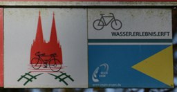 Die Logos einiger Routengruppen unterscheiden sich ausgehend von einem Grundmotiv nur durch Ordnungszahlen oder -buchstaben. Eine weitere Besonderheit sind Varianten für verschiedene Richtungen, wie für "Wasser.Erlebnis.Erft" in der Abbildung.