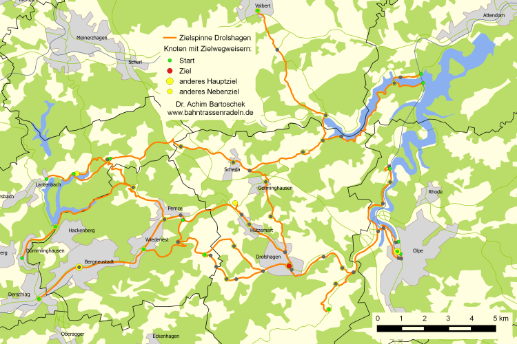 Ziele sind eine besonders qualifizierte Untermenge der Knoten, auf die an anderen Knoten mit Zielwegweisern hingewiesen wird.