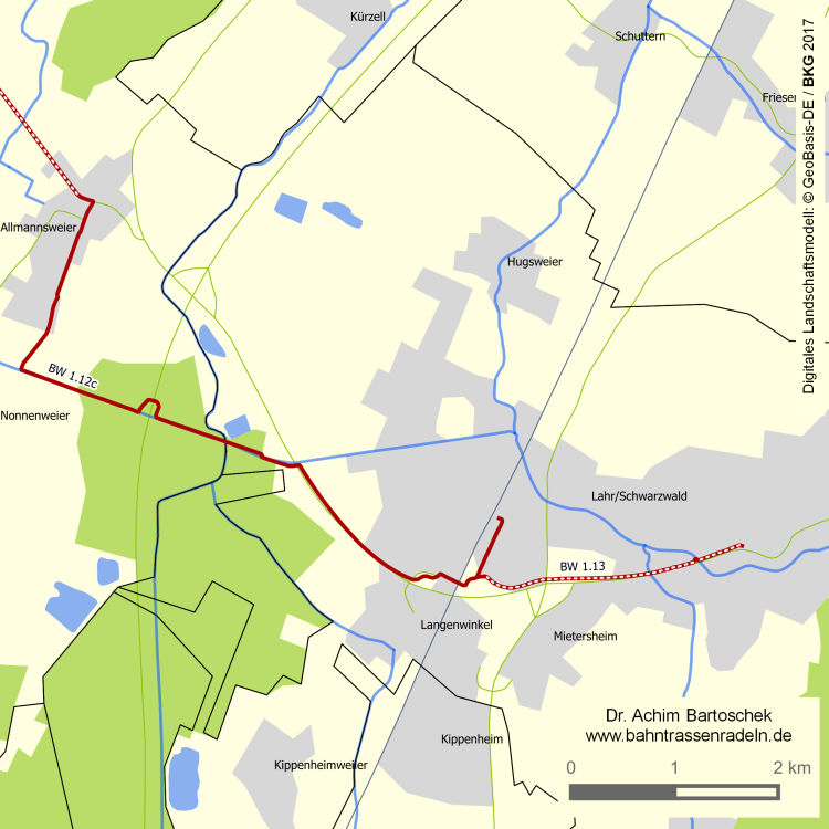 Der überwiegend straßenbegleitende Radweg dient seit wenigen Jahren als Anbindung vom Bahnhof Lahr, der an der Rheintalbahn liegt, zur Lahrer Innenstadt. |