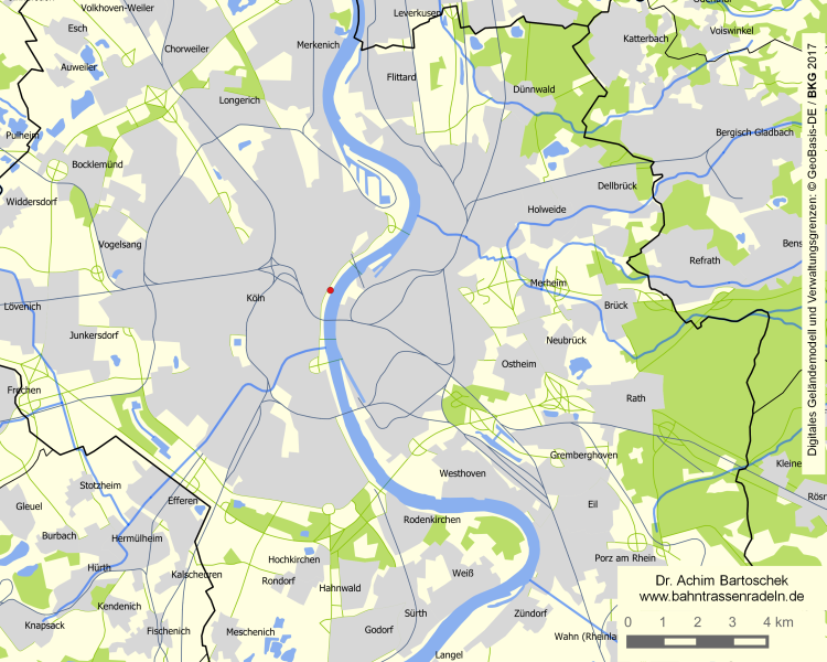 Ursprüngliche Bewertung: Die Veloroute 01, die innerhalb der Ringe halbkreisförmig über die Wälle auf einer autoärmeren Route um die Kölner Innenstadt herumführt, dürfte zeitlich zwischen der älteren grünen Netzbeschilderung und der HBR-Wegweisung des Radverkehrsnetzes anzusiedeln sein. Diese Route ist erstaunlicherweise nur in Abschnitten ins Radverkehrsnetz übernommen worden .