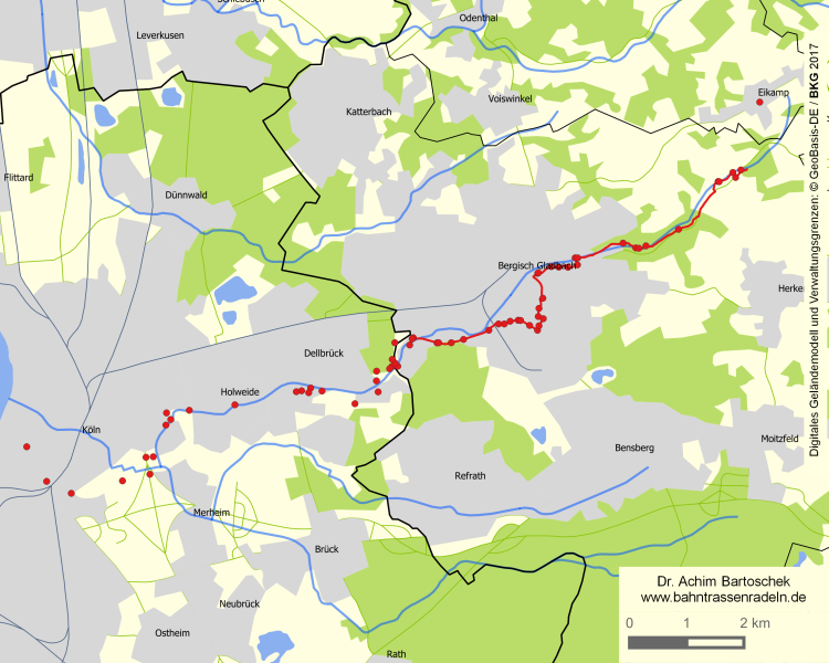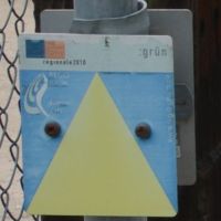 Ursprüngliche Bewertung: Im Vorgriff auf die HBR-Beschilderung im Rahmen der RadRegionRheinland wurden die Regiogrün-Erlebnisrouten 2005 durch eine wanderwegartige Wegweisung mit kleineren Schildern und - sofern keine vorhandenen Pfosten genutzt werden konnten - niedrigen blauen Holzpfosten ausgewiesen.